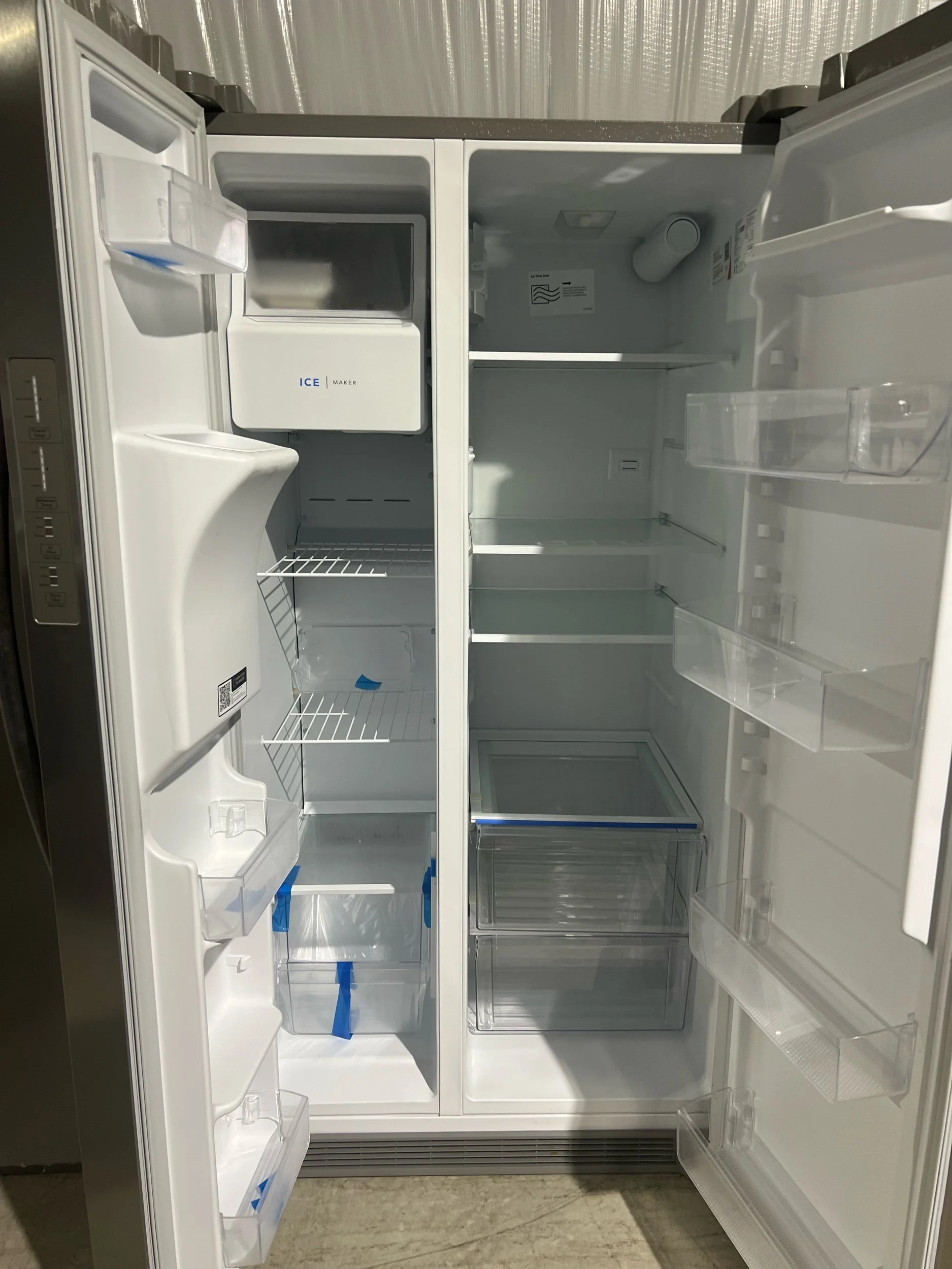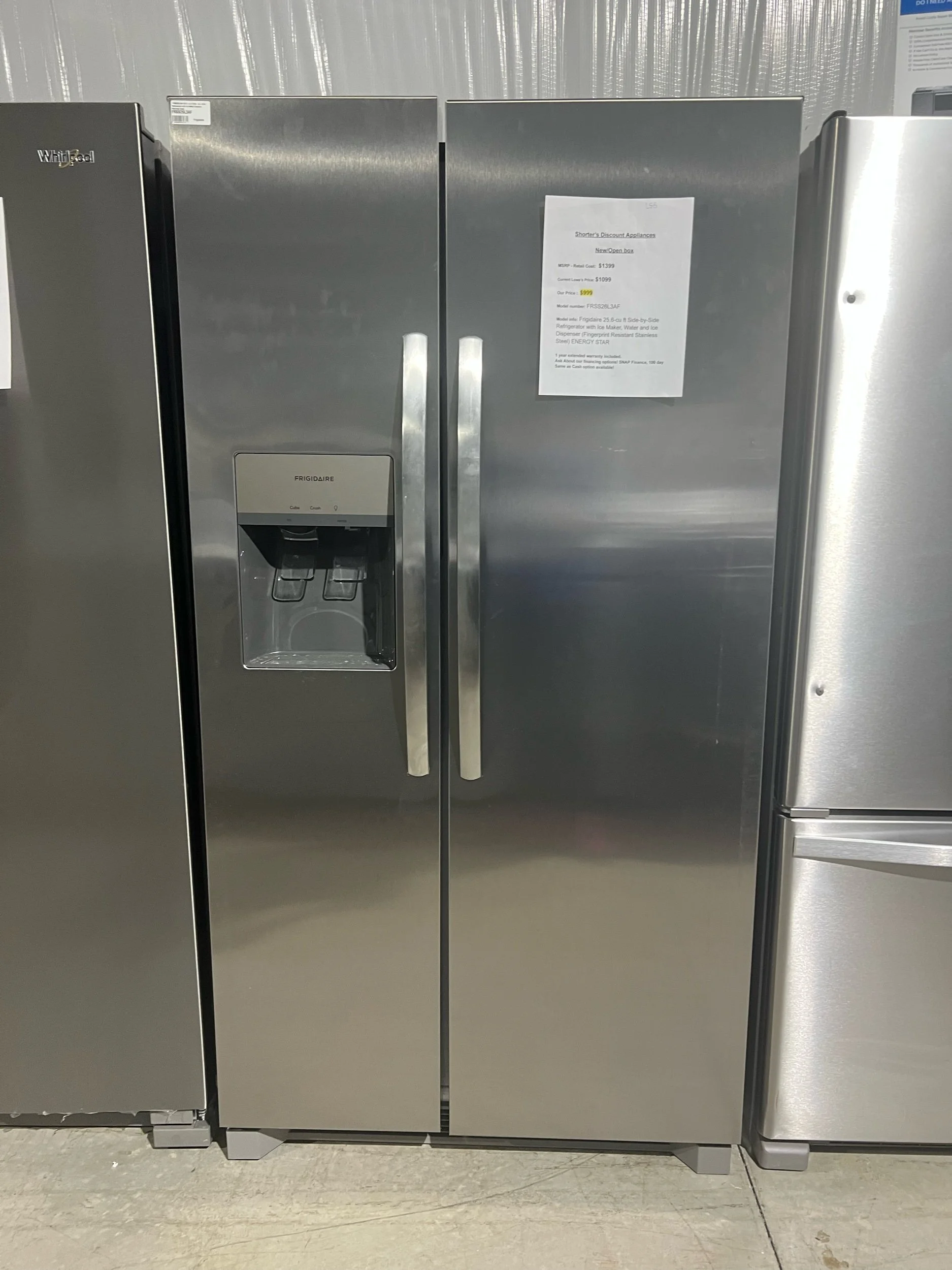 Model info: Frigidaire 25.6-cu ft Side-by-Side Refrigerator with Ice Maker, Water and Ice Dispenser (Fingerprint Resistant Stainless Steel) ENERGY STAR